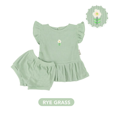 Mooi Setelan Anak Perempuan Rib Ruffle Set